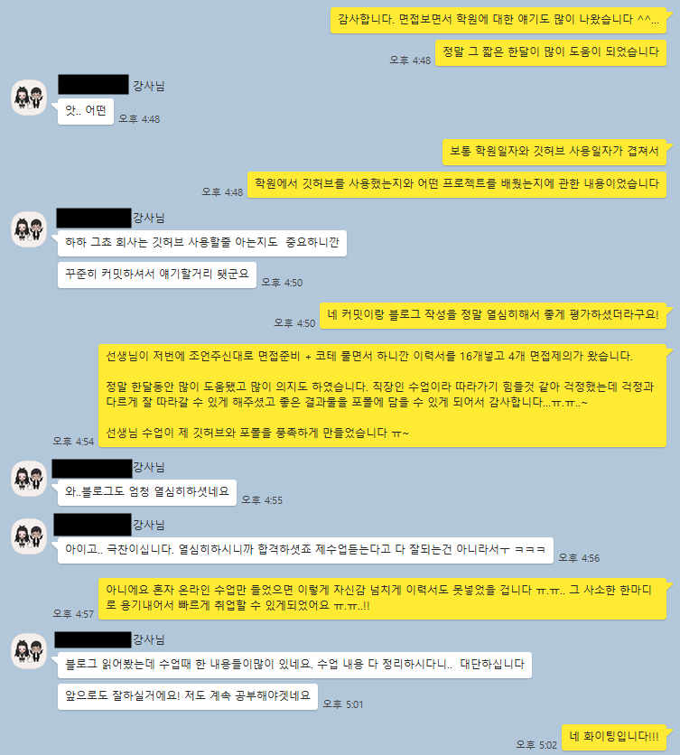 안에서 면접관련으로 얘기를 해보셨는데 저를 굉장히 좋게 봐주시고 추가 면접없이 저와 함께하고자 연락을 주셨다고 말씀해주셨다... (매우 갬동먹음...)