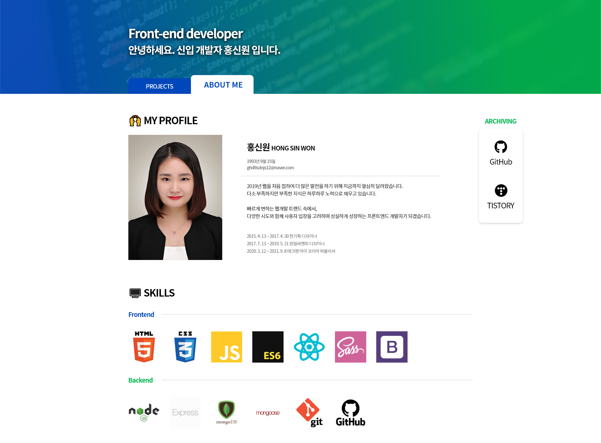첫 사회생활은 해양플랜트 제조현장에서 외국인 선주와 통역 및 안전업무를 하였습니다. 이후 우여곡절을 거치며 해외에 머물다, 개발을 배우고 싶어 귀국 후, 국비 지원교육으로 처음 코딩을
